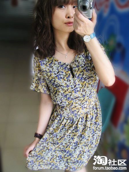 黄色的裙裙也是有;白色花和蓝色花点缀着的~~~