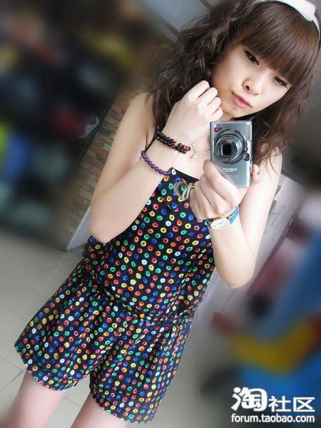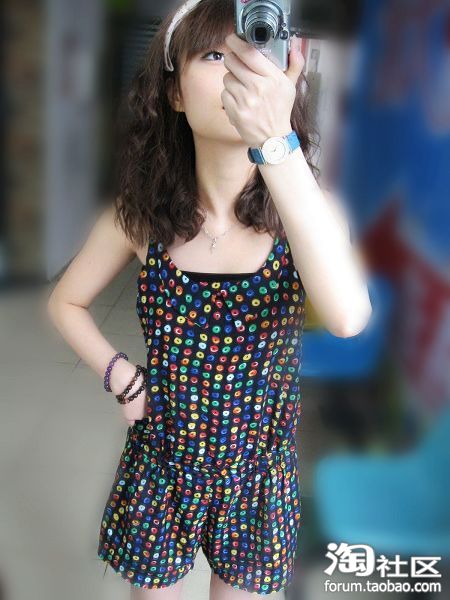 再加上彩色的圆圈,显示出衣服的可爱,很有夏天的味道。