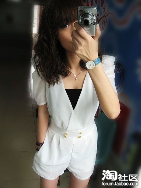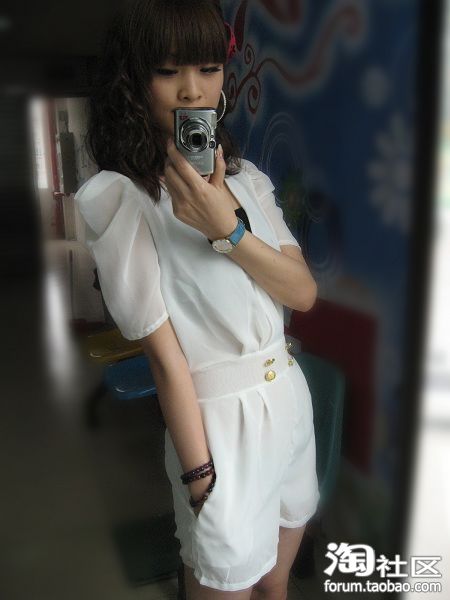 衣衣的袖是耸肩,高腰裤的设计显得非常有欧美的风格哦~~~