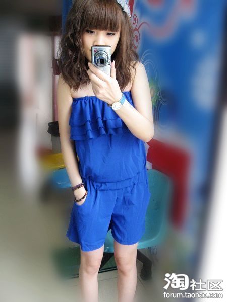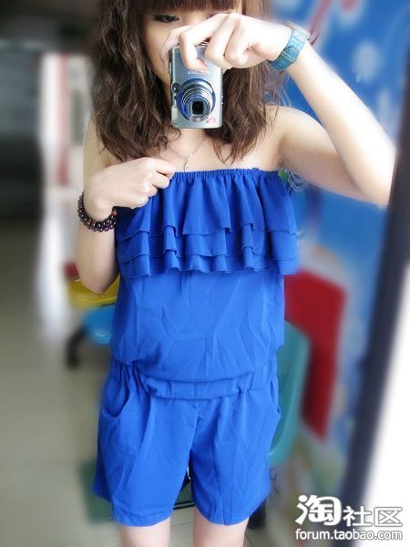 抹胸连衣裤有种小礼服的优雅气质,纯蓝色的颜色简简单单,给人眼前一亮。