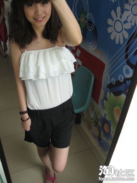 上身是用白色蕾丝设计的,下身是用黑色雪纺面料设计的!!