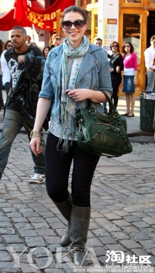 牛仔款机车外套看来很适合春天穿着,Michelle Trachtenberg也选择了一件,做旧感的蓝色让她看起来十分有型