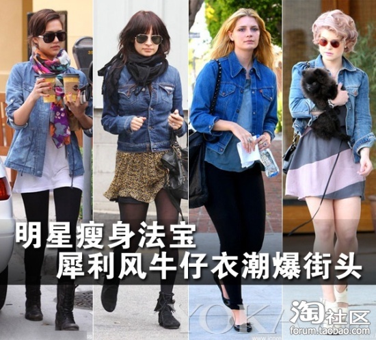 Nicole Richie这件深色牛仔外套非常合身,修身的剪裁让她娇小的身材看起来更加骨干。内搭碎花雪纺裙,鞋子选择流行的黑色流苏靴,很适合日常穿着。