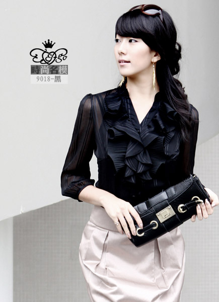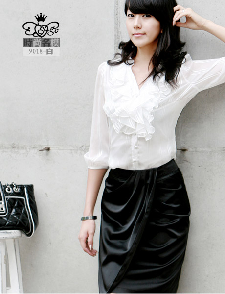 衬衫向来是OL的工作服,但是衣领的样式也不妨有一个选择,马上让古板的衬衫时尚起来,再配上传统的A裙,即显得高贵,又体现在OL的简约风格。