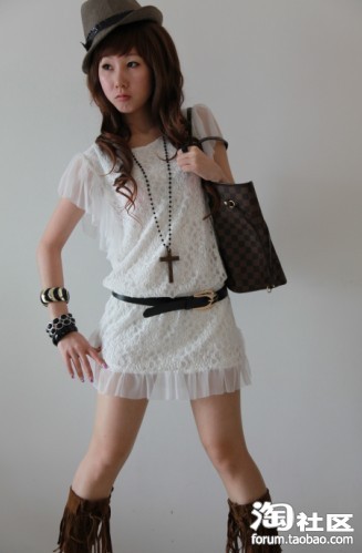 纯白色.米色.象牙色等钩针或蕾丝连衣裙.