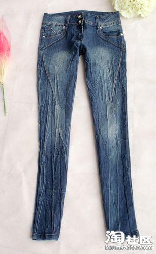 W005 深色中低腰弹力牛仔显瘦修腿小脚裤36元