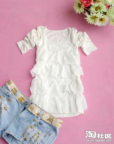 层层百褶设计雪纺长袖T恤 红/黑/白三色 团购价 28元