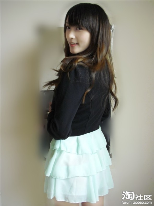 雪纺裙,不变的流行~上身是蕾丝的,下摆是雪纺的蛋糕裙的样式,很清爽的浅蓝色~搭配小外套,露出一截蛋糕裙,很小女人哦~