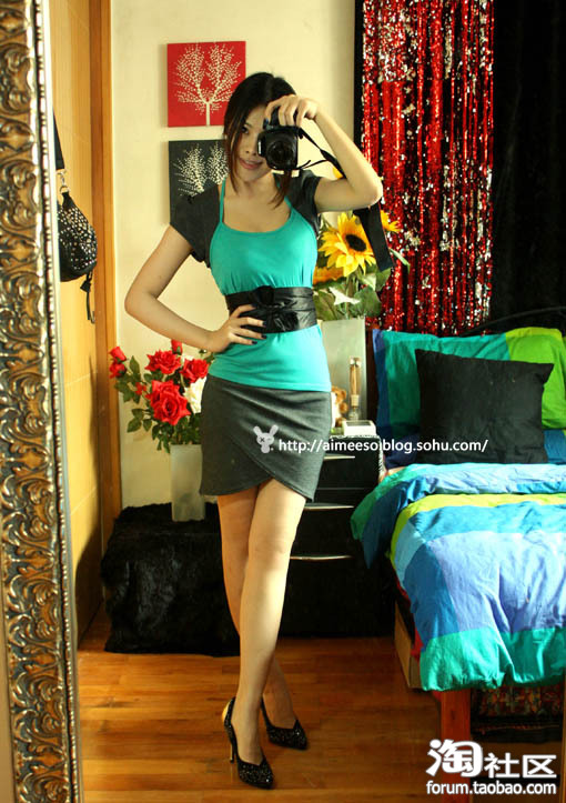 将松紧腰节提升至胸部,系上小皮带修饰出腰型,随即变成清新的小抹胸裙