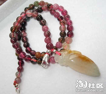这串是比较小的碧玺,因为我手满小的,,带大了确实不怎么好看,而且也不好装饰下面那块翡翠,
