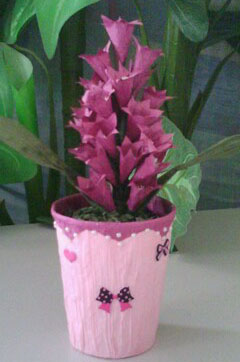 看看我下面做的盆花吧,风信子,郁金香,玫瑰花,和真的一样吧,都是我一片花瓣一片花瓣做的,