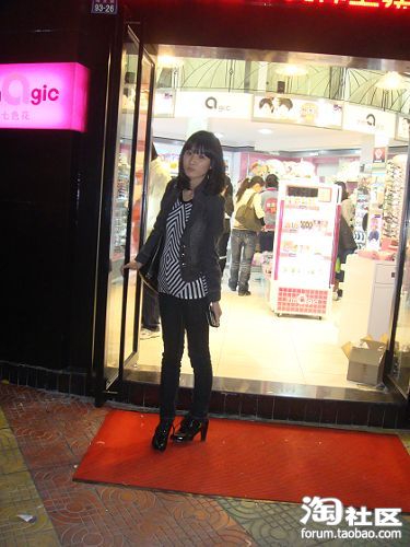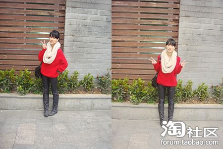 皮裤也可以配可爱的白色羽绒马甲呢~~酷酷的可爱