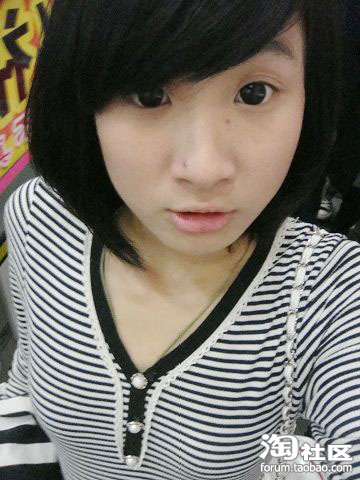以前的发型是中分。妈妈说老气。于是剪了齐齐的卡哇伊刘海呢