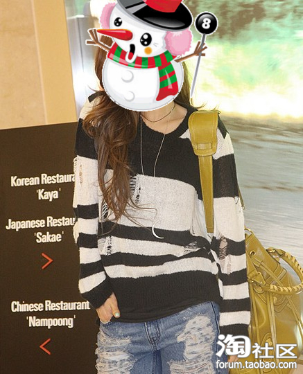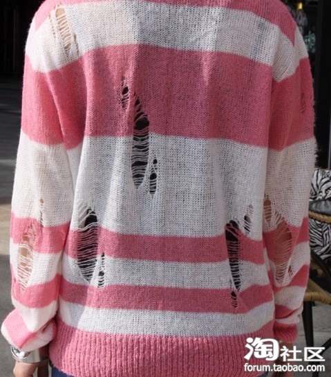 上面配个粉红的针织衫,看上去破破啦啦的 ,穿起来感觉相当好滴~
