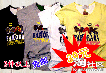 促销活动:2010新款范可儿时尚精品女装纯棉正品T恤39元一件,购买2件以上免运费。
