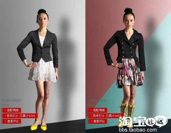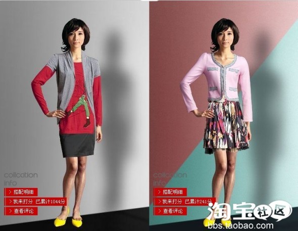 前几天玩了淘宝试衣间,里面的衣服很多,不过鞋子款式太少,以至搭配好衣服没有鞋子配,起初刚玩的时候就看到了排行第一名,在这里就不提名了,以免她会介意,看了看她的搭配,觉得背景、模特表情、颜色和款式搭配看着都还很舒服,所以就发到这里些片片大家一起分享。