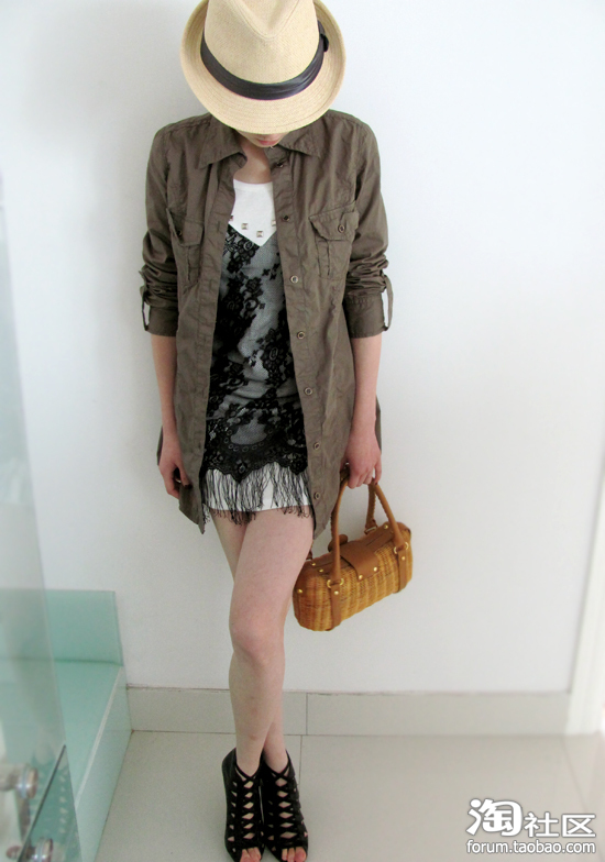 工装军绿衬衫+摇曳流苏睫毛T打造日式混搭风
