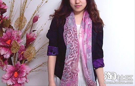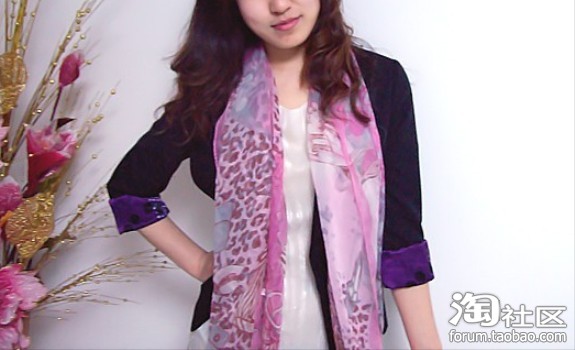 假定这个场景是因公出差,到海边城市开会,工作装是必不可少的,合体的修身收腰小西装,里面配上白色雪纺衬衫,粉色豹纹丝巾和挽起的紫色袖口是亮点,干练中不失柔美。(单品:小西装+白色雪纺衬衫+铅笔裤+粉色豹纹丝巾)