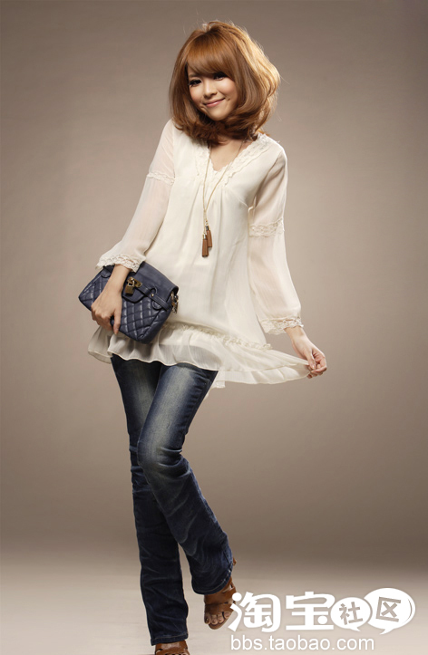 雪纺衫一直都是流行时尚的焦点所在,浪漫休闲的蕾丝V领七分袖雪纺衫 搭配上性感牛仔裤。简洁的款式定能带来无限动感和女人气息,让你成为人群焦点。