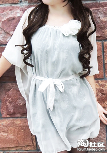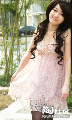 胸口碎花,全身雪纺的蕾丝花边,略微惬意的表情