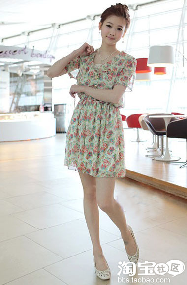出游时很多人会觉得裤子会方便些,其实一般的休闲踏青像这样浪漫的荷叶边碎花裙也可以,高腰线的设计,更显出修长的双腿,搭配针织衫开衫一样很大方自然,拍照会更美哦!