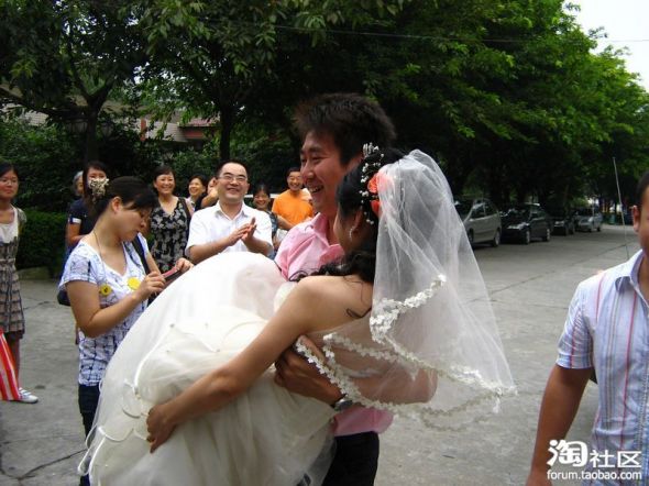 刚下婚车,据说是不能走下去的,只能LG抱下车,哈哈