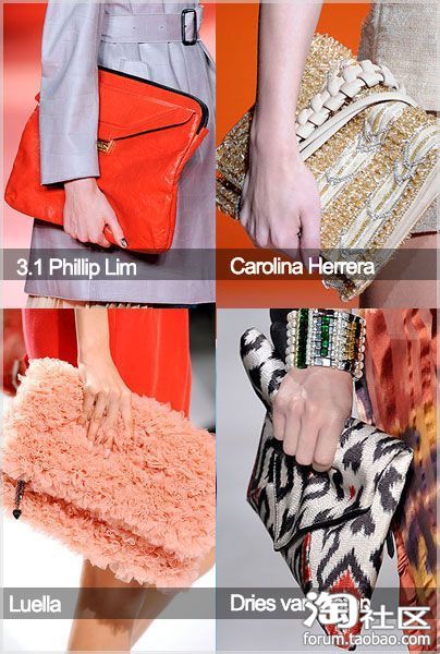 同是手拿包,款式却在今年有了不少变化,增大了体积,也增加了便于两用的链条背带,趋向更加实用化。