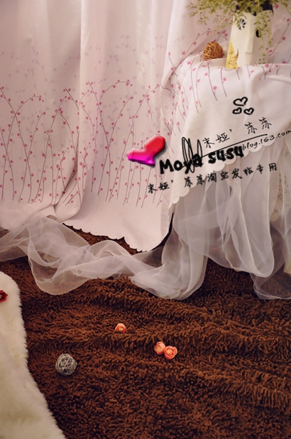 窗帘是在布艺柜台扯的布缝制的,褐色地毯是在家居店购买,白色毛毡是在淘宝购买
