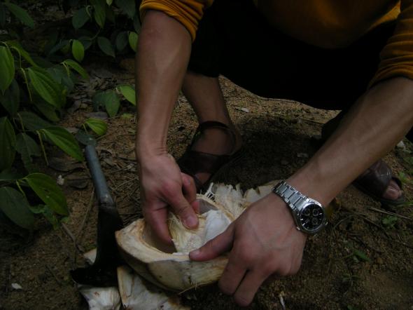 手表近景。。偶更关心的是椰子肉,纯天然无公害新鲜的刚落地的美味可口鲜嫩无比的椰子肉啊,看着照片开始流口水