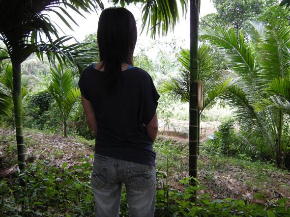 槟榔树下,衣服也是淘宝买的VM的两件套,还有,看见裤筒松了没?大家不知道俺以前的样子,解释一下,本人165的身高,曾经体重120多斤,嘿嘿,为了去婆家有个好印象,提前在淘宝买的荷叶茶减肥来滴~~~~~~~没有副作用,效果不是很明显,不过瘦几斤就不错啦,太瘦怕准婆婆也不喜欢,农村人都觉得有点肉才有福气
