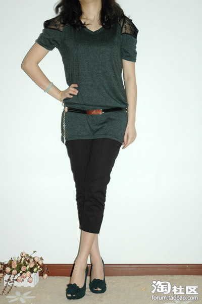 这件T没有腰身 所以我选择了搭配一条细腰带