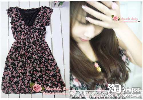 日单花柄雪纺连衣裙只售35元!爆款!!