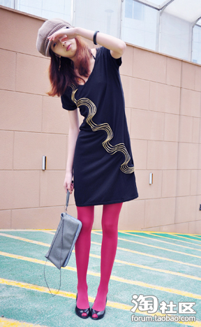 连衣裙+挎包+彩色丝袜+鱼嘴高跟鞋