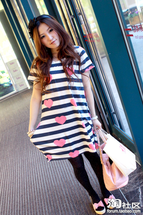 有时候也懒得打扮自己,可是又不想穿的很简单的出去,这一次可让我找到了,条纹+桃心,一切就是这么简单!
