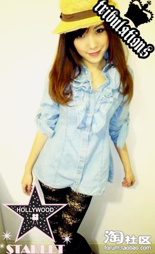 木耳花边的牛仔布衬衫