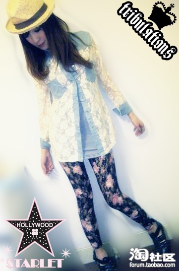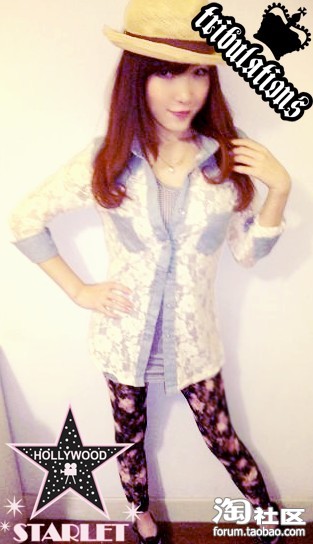 蕾丝+牛仔布的衬衫