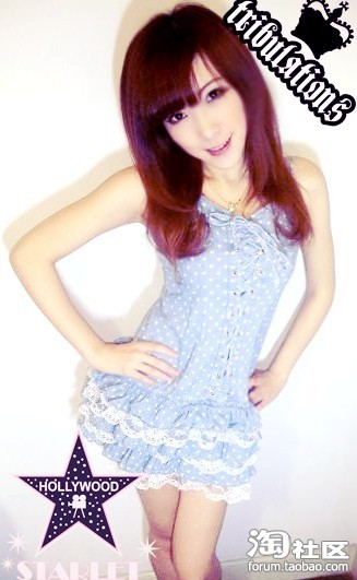 波点牛仔蛋糕裙,好甜美的感觉吧。