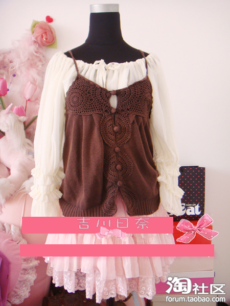 蕾丝连衣裙搭配各种小马甲也非常可爱甜美
