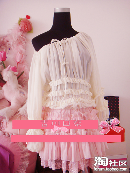 下面搭配蛋糕裙 衬衫的荷叶边会和裙子浑然一体