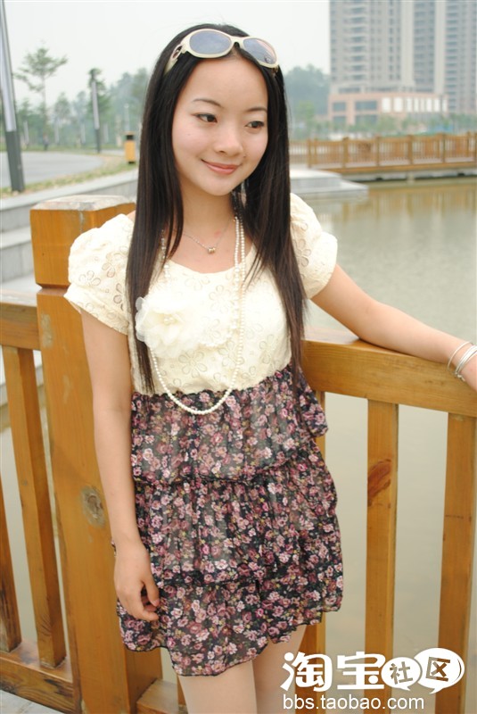 4:雪纺蕾丝裙+太阳镜+配件大花珍珠链打造甜美公主风