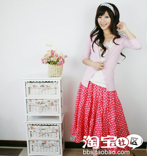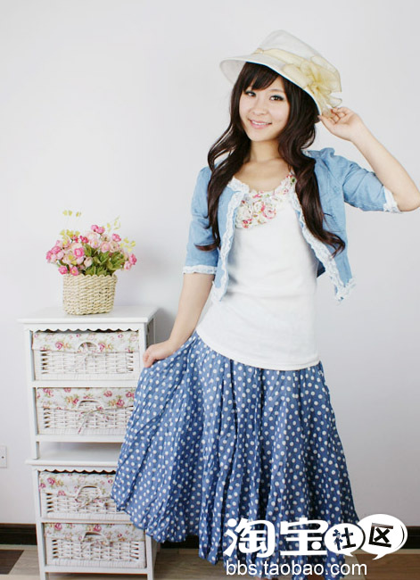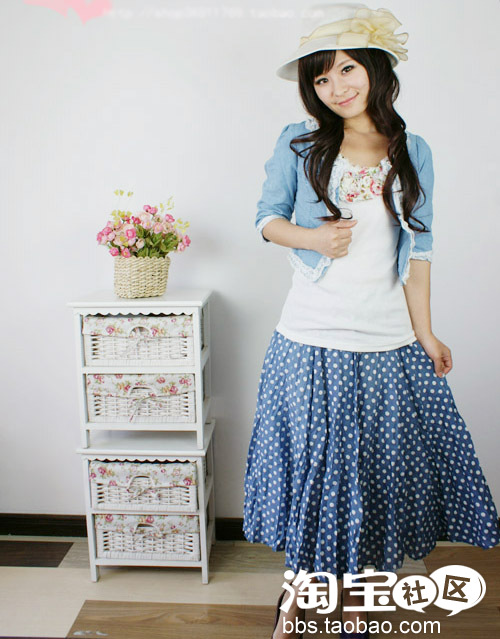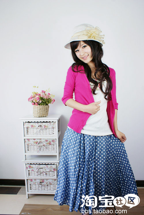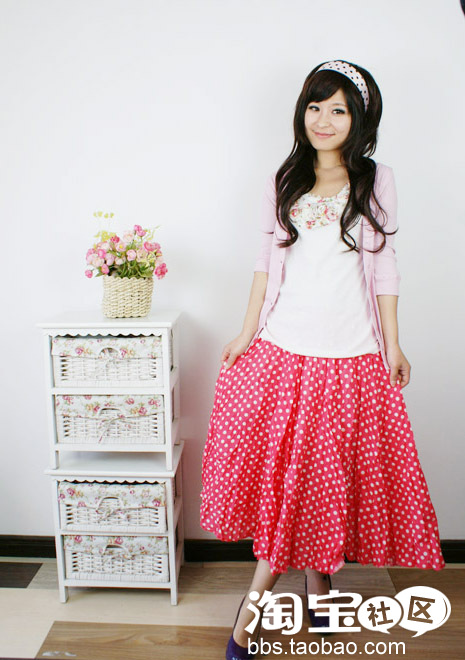 喜欢波点长裙 搭配简单的T恤 背心 都可以很出彩~