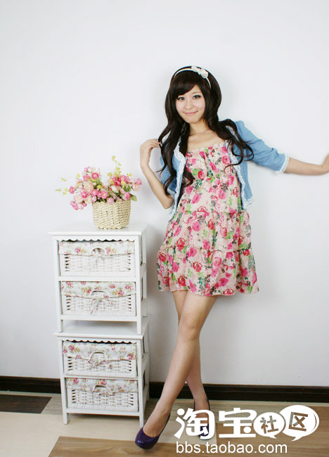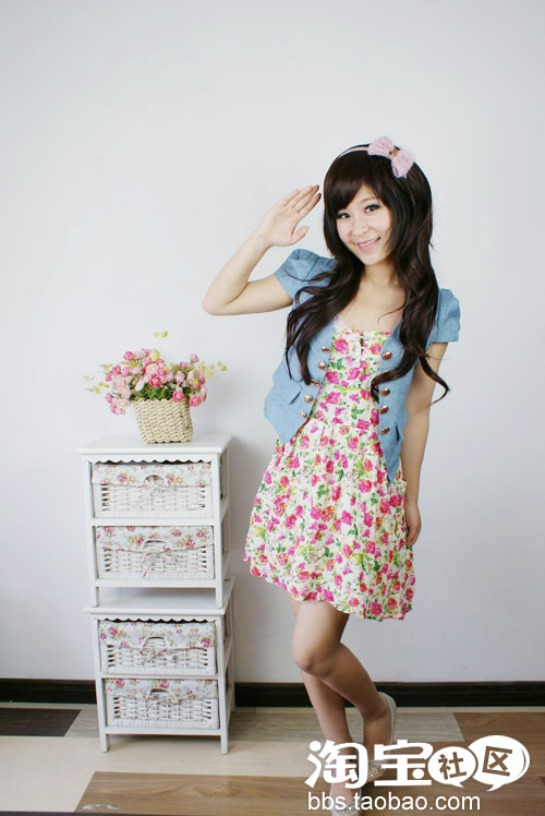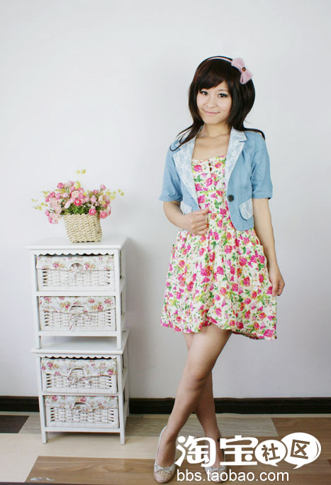 粉粉的吊带裙 配上蕾丝气息的牛仔短外套
