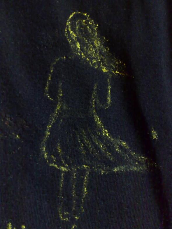 备注:衣服为女生的保暖内衣,由于起球了,所以上色不好上,本图为丙烯颜料所画,由于我业余爱好,还不会画油画,多亏了一个朋友的指导,在这谢谢她了