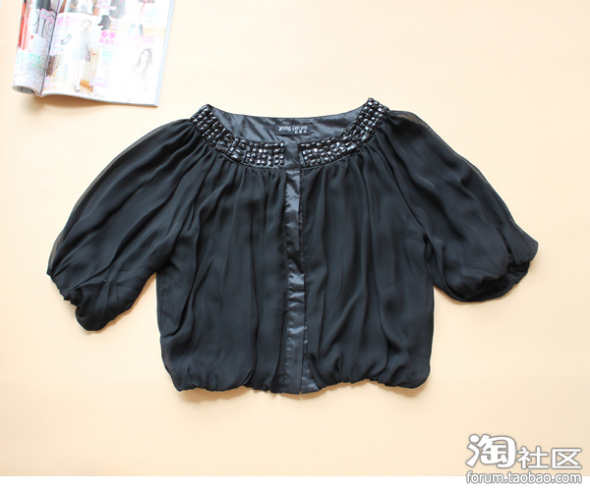一款黑色雪纺小短外套,适合不同身型的MM哟。
