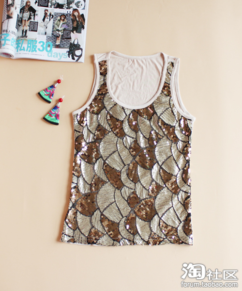 亮片背心,像浪花一样,单穿和内搭都很不错呢。
