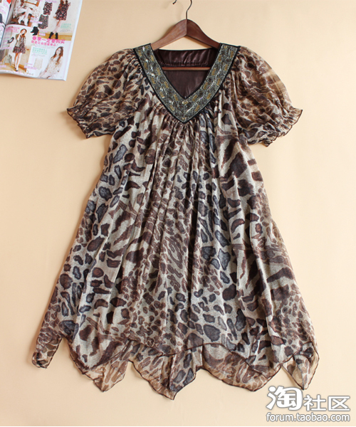 哇,豹纹也,钉珠的V领,不规则的下摆很甜美性感呢