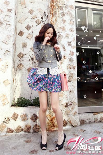 印花短裙穿起来淑女气质十足哦,小外套也很帅气