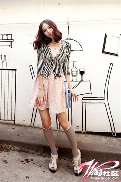 粉色连衣裙穿起来非常甜美可爱,外搭波纹开衫简直太迷人啦