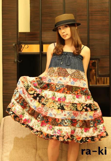 淑女气十足的紫色草帽搭波西米亚风水洗牛仔布拼接吊带长裙,清新的夏日已经来临