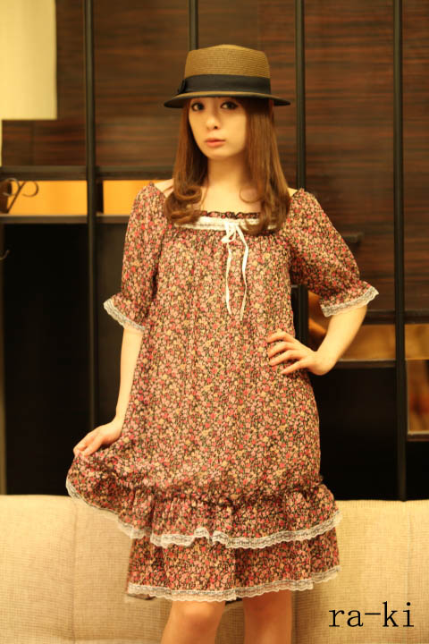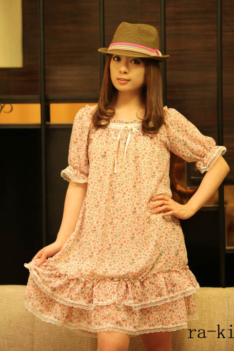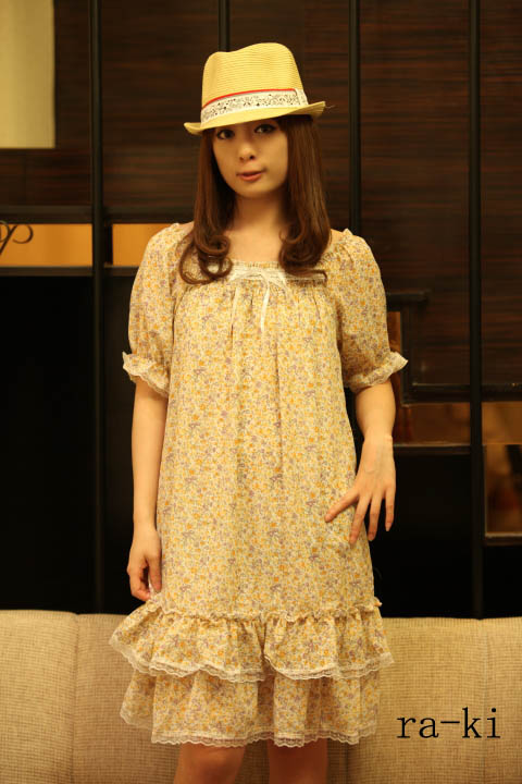 双层下摆雪纺裙搭配田園風的黃色花邊小草帽